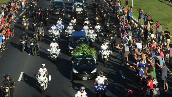 Χιλιάδες οπαδοί φορώντας φανέλες με τον αριθμό 10, δηλαδή την εμφάνιση του Μαραντόνα με την εθνική Αργεντινής, την Μπόκα Τζούνιορς, τη Νιούελς Ολντ Μπόις και την Αρχεντίνος Τζούνιορς συνόδευσαν τη νεκροφόρα, ο οδηγός της οποίας μπερδεύτηκε και βγήκε σε άλλη έξοδο με αποτέλεσμα να καθυστερήσει η άφιξη.