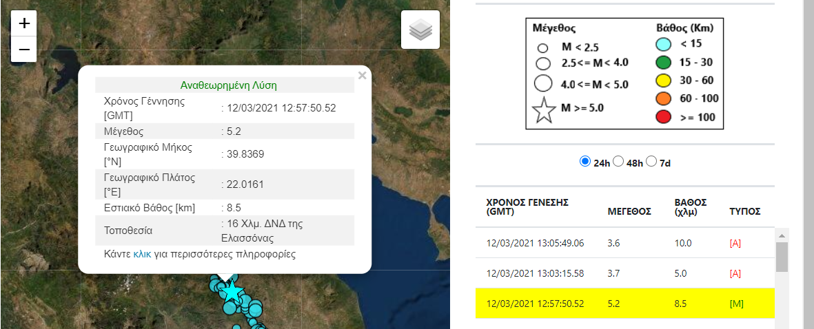 Ισχυρή σεισμική δόνηση ισχύος 5,2 βαθμών της κλίμακας Ρίχτερ έγινε λίγα λεπτά πριν τις 3 το μεσημέρι της Παρασκευής.