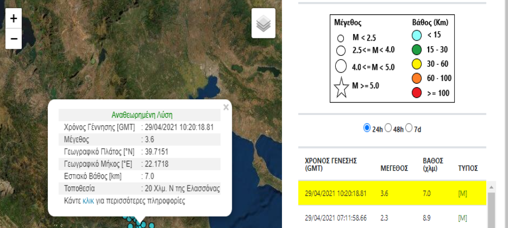Μια ακόμη σεισμική δόνηση από την περιοχή της Ελασσόνας σημειώθηκε το μεσημέρι της Μεγάλης Πέμπτης 29 Απριλίου 2021.