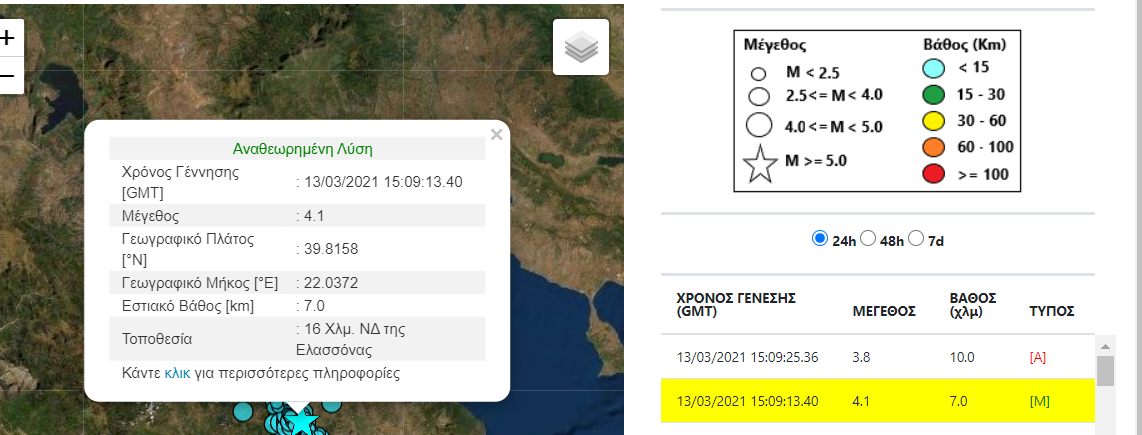 Ένας νέος μετασεισμός 4,1 βαθμών της κλίμακας Ρίχτερ εκδηλώθηκε στις 17:09μ.μ., 16 χιλιόμετρα νοτιοδυτικά της Ελασσόνας και σε εστιακό βάθος 7 χιλιομέτρων.