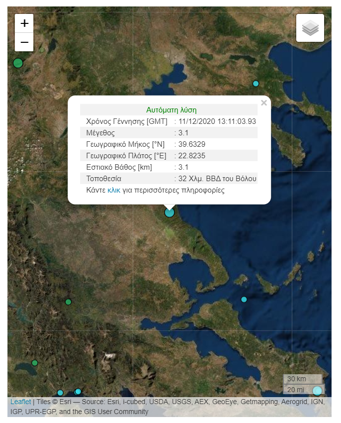 Η δόνηση, που έγινε αισθητή και στην πόλη της Λάρισας, σύμφωνα με την καταγραφή του Γεωδυναμικού Ινστιτούτου του Εθνικού Αστεροσκοπείου Αθηνών τοποθετείται στα όρια των νομών Λάρισας και Μαγνησίας.