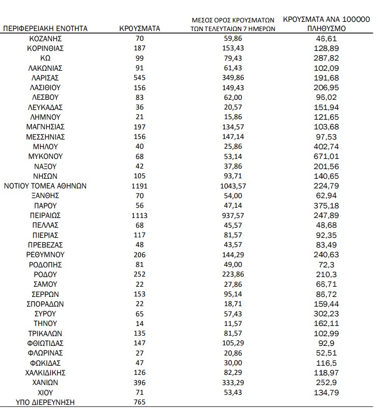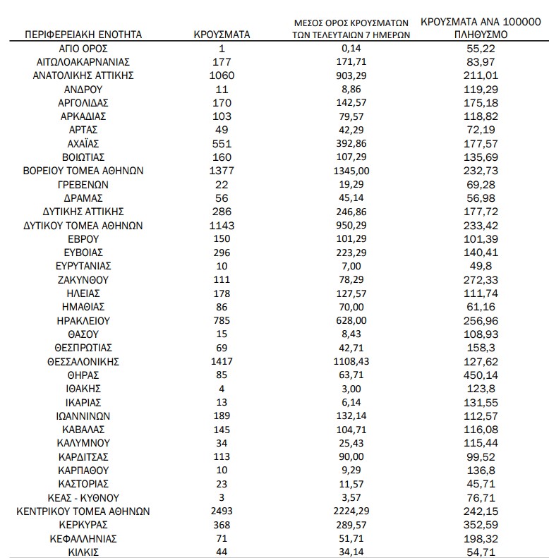 Η κατανομή των κρουσμάτων κορονοϊού σε όλη τη χώρα: