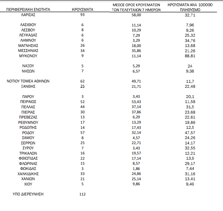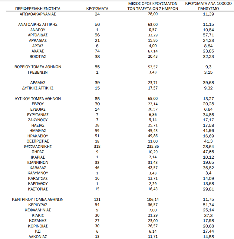 Αναλυτικά, η γεωγραφική κατανομή των 2.197 κρουσμάτων, όπως καταγράφονται σήμερα σε ολόκληρη την Ελλάδα: