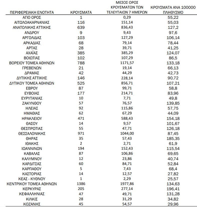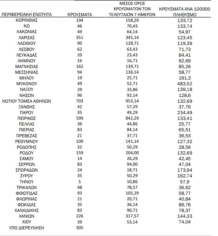 Η κατανομή των κρουσμάτων κορονοϊού σε όλη τη χώρα: