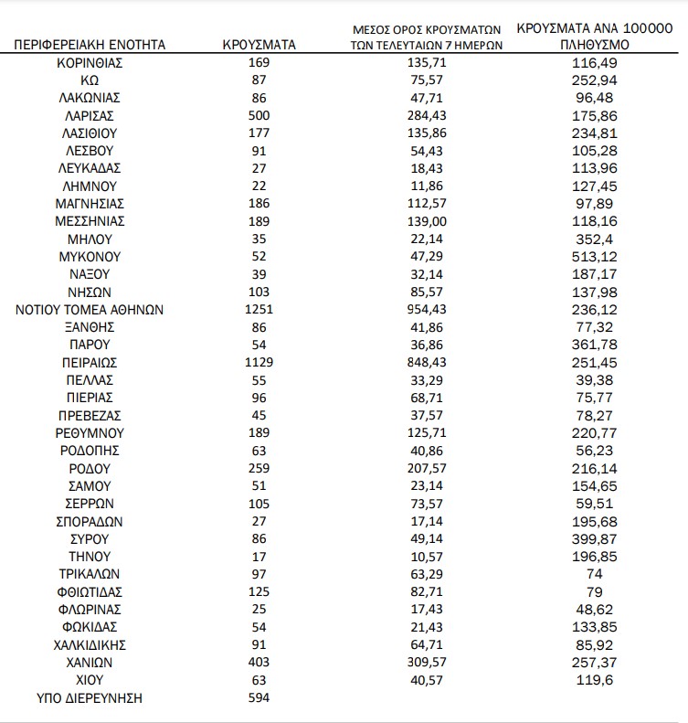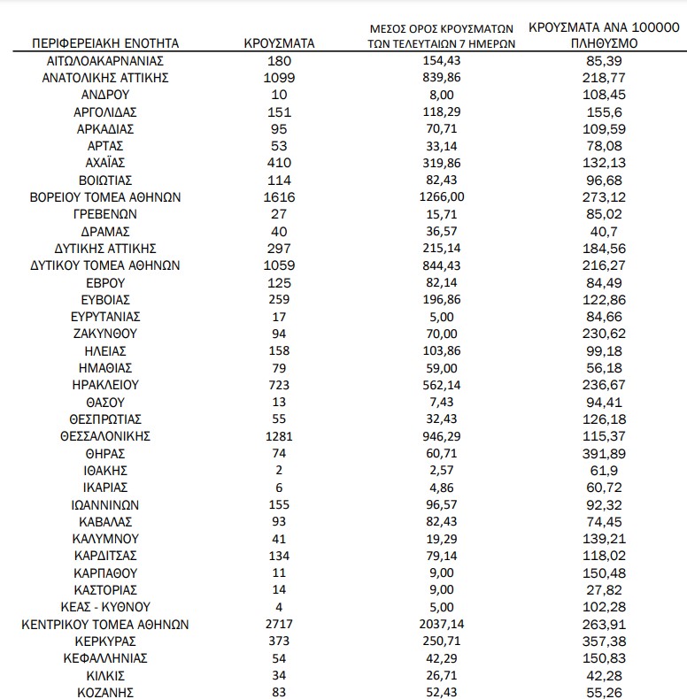 Η κατανομή των κρουσμάτων κορονοϊού σε όλη τη χώρα: