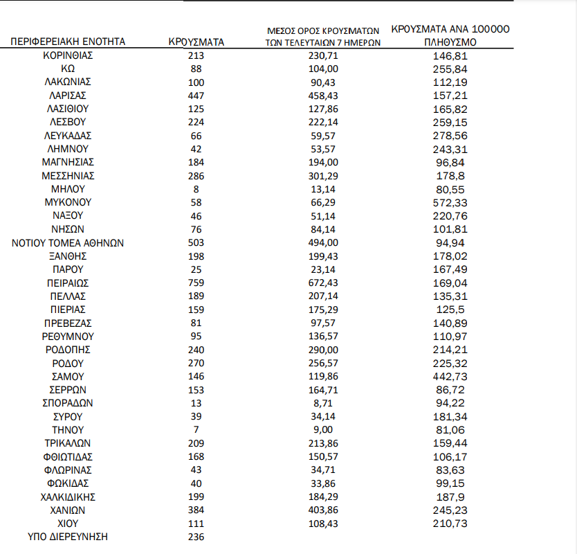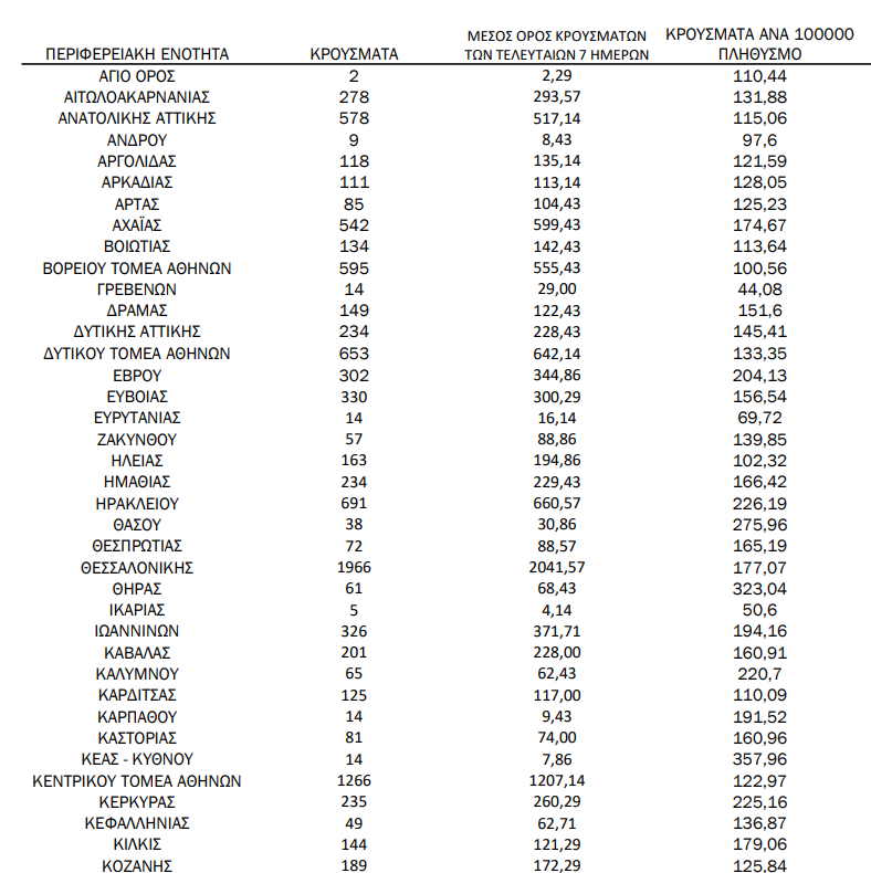 Αναλυτικά, η γεωγραφική κατανομή των νέων κρουσμάτων κορωνοϊού σήμερα την Ελλάδα: