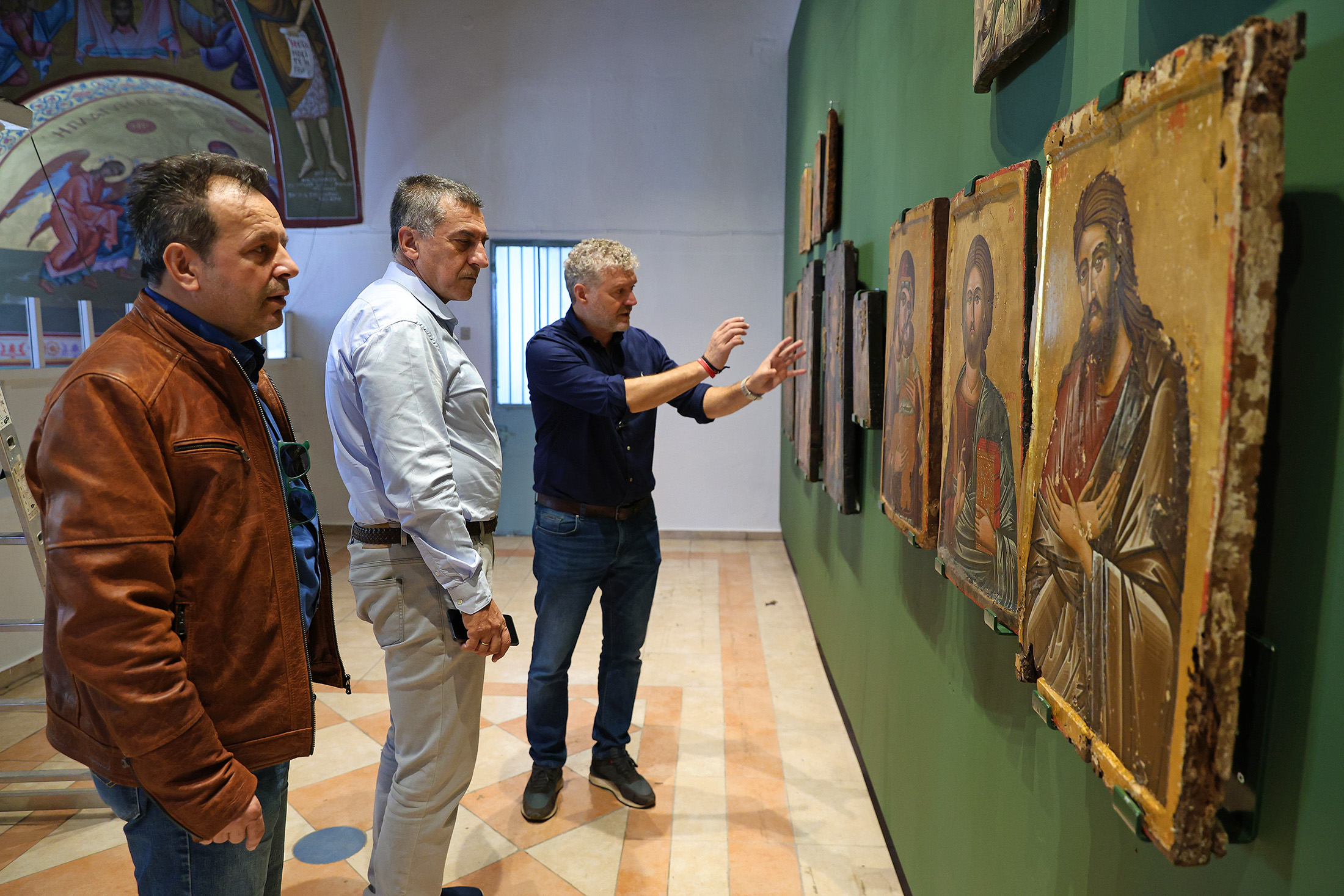 Ακολούθησε επίσκεψη στον Ιερό Ναό Αγίας Παρασκευής στη Μελιβοία, όπου φυλάσσεται μια σπάνια συλλογή αγιογραφιών και πρόκειται να μεταφερθεί στο νέο εκθετήριο που κατασκευάζεται στην περιοχή. Το έργο περιλαμβάνει και τη δημιουργία Κέντρου Κάστανου, το οποίο θα λειτουργήσει ως χώρος προβολής και ενημέρωσης γύρω από το «ευλογημένο προϊόν» του Κισσάβου. Ο Περιφερειάρχης ενημερώθηκε για την πρόοδο των εργασιών και τόνισε τη σημασία της ανάδειξης της τοπικής πολιτιστικής κληρονομιάς.